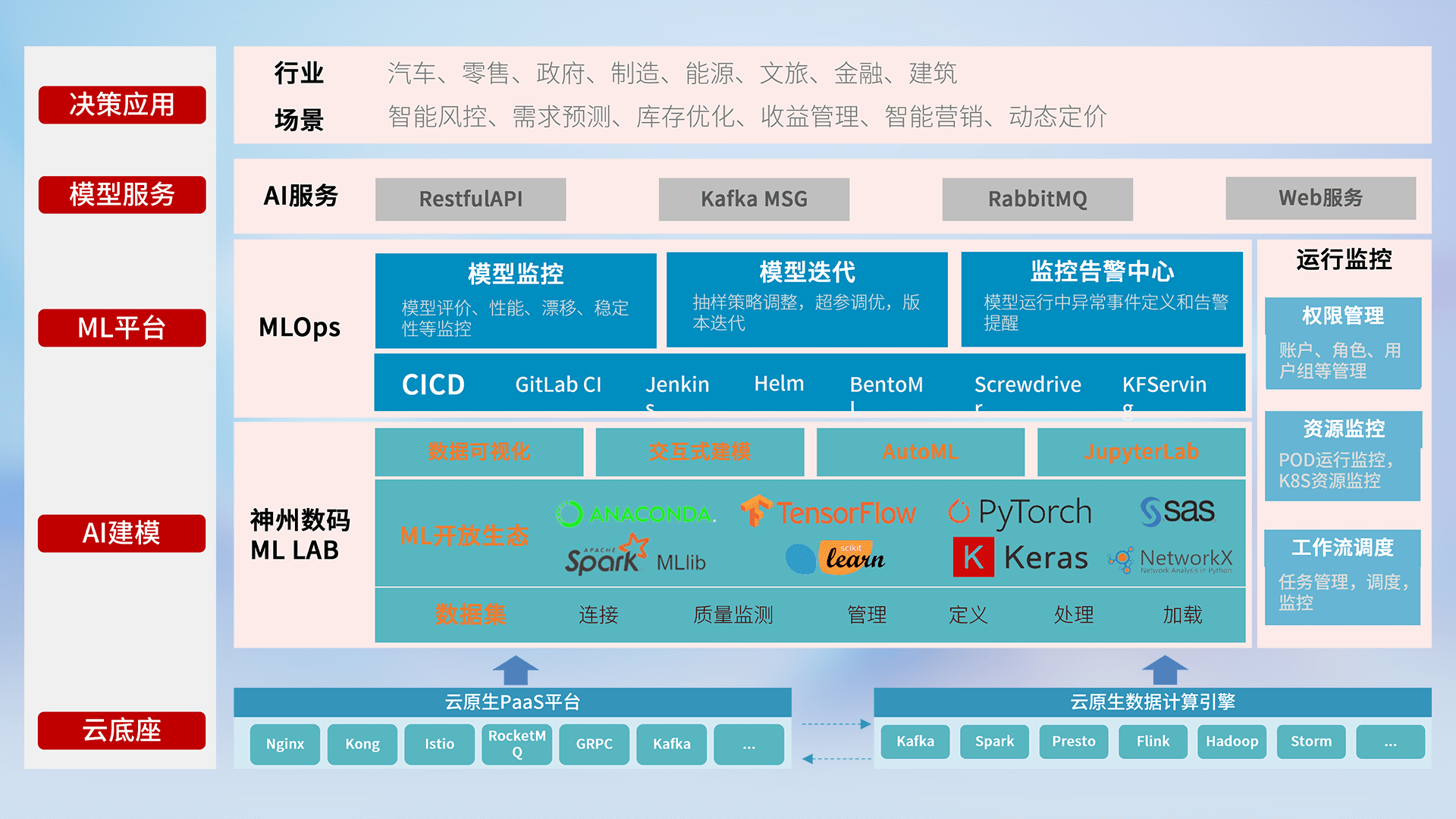 数据+模型双引擎驱动,,,,面向智能服务场景,,,,快速灵活利用AI技术,,,支持业务决策,,,,助力企业智能化转型破局。。